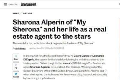 “Oh my God, almost daily, almost anytime someone hears my name,” Ms. Alperin says. “They say ‘Oh, like ‘My Sharona?’ And...